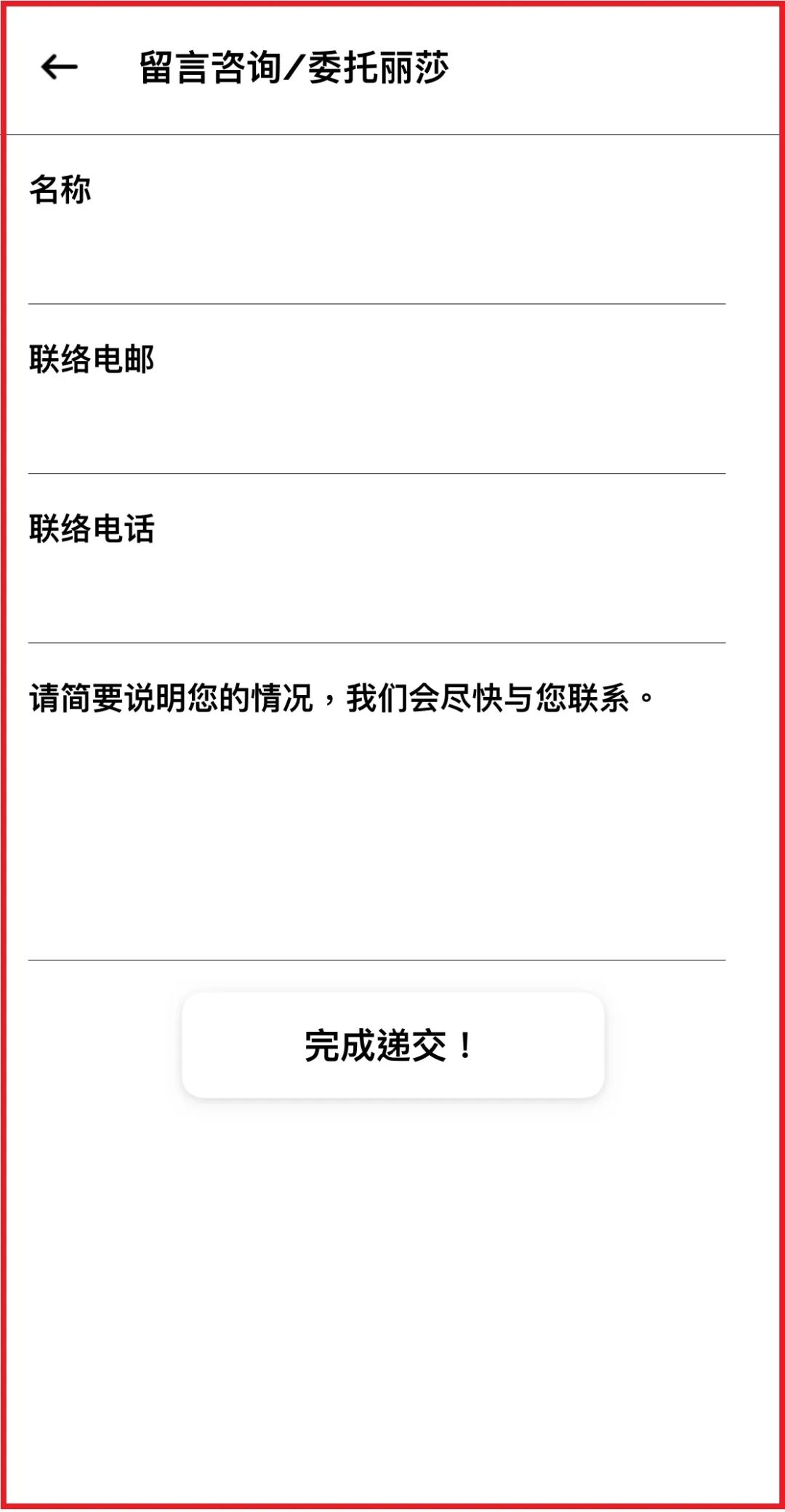 没有问题!莎粉们只要从主页菜单点选“留言咨询/委托丽莎”,然后再跟着上面出现的表格选项,依序填入您的名字、联络信息和您的提问,丽莎的专业律师就会给予回复,或者直接与您联系。