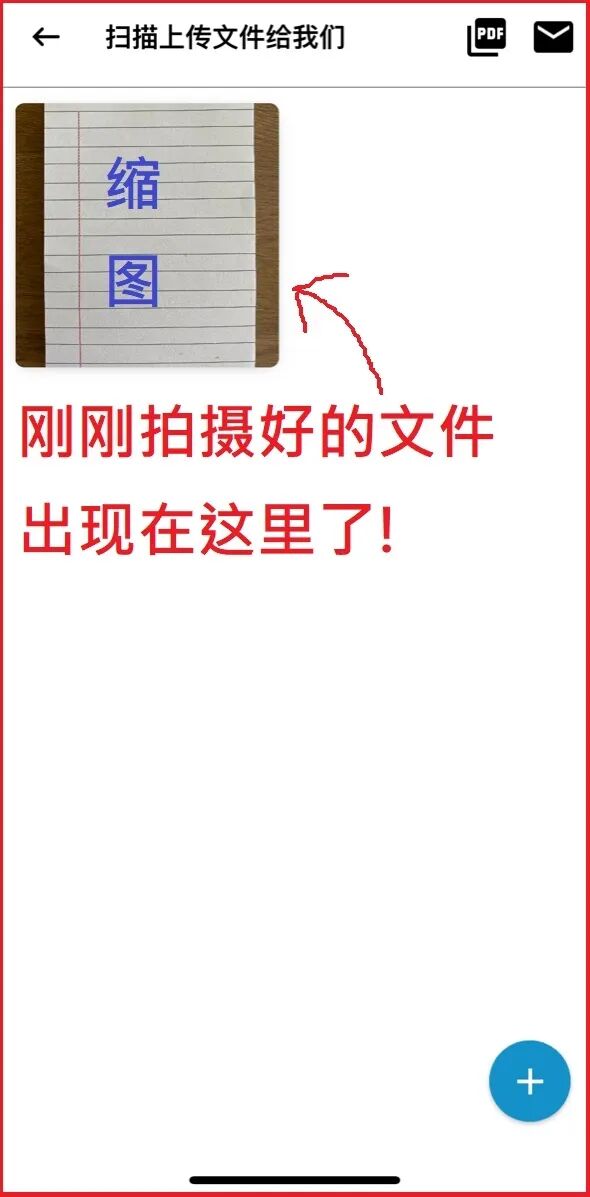拍摄完成后,您会看到所有您已拍摄/扫描的全部页面缩图,确认内容无误后,您就可以点选右上角的“信封”图样,接着跟着指示把您的文件,云端寄送到丽莎的电邮了!
